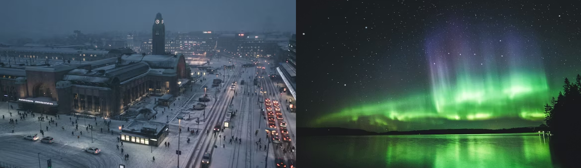 Breakfast, Today Private transfer from Hotel to Airport. Departure from Kemi Airport for your flight to Helsinki. Private transfer from Airport to Hotel. Check in at the hotel. Rest of the day at Leisure. Overnight in Helsinki.